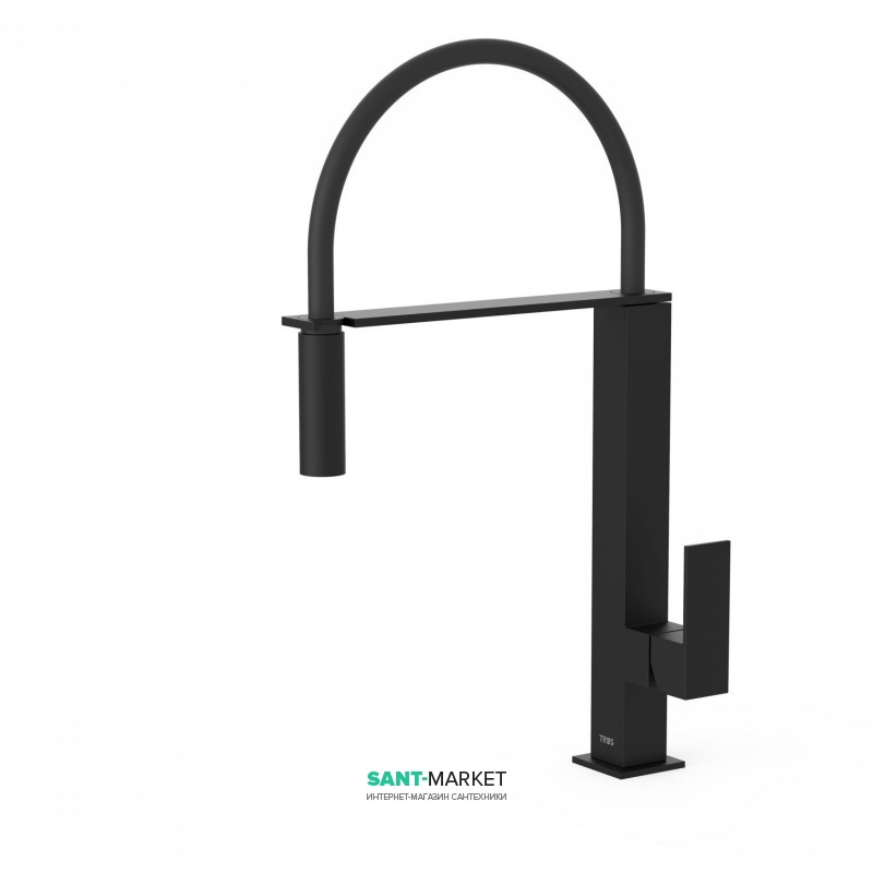1) Смеситель для кухни Tres Cuadro colors с выдвижной лейкой черный матовый
