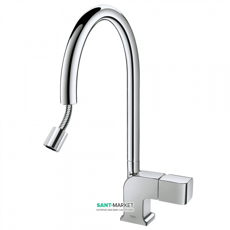1) Смеситель для кухни Tres Top-Tres с выдвижной лейкой хром