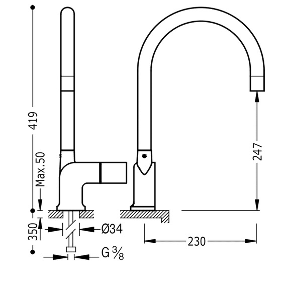 - подвод: G ⅜