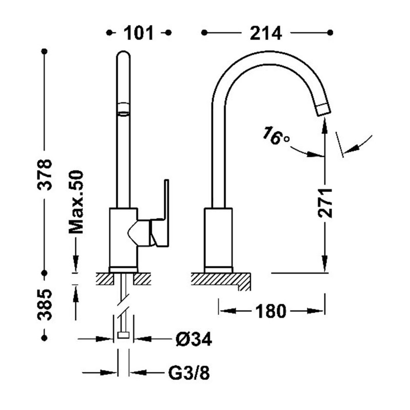 Смеситель для кухни Tres Kitchen однорычажный хром 21644010