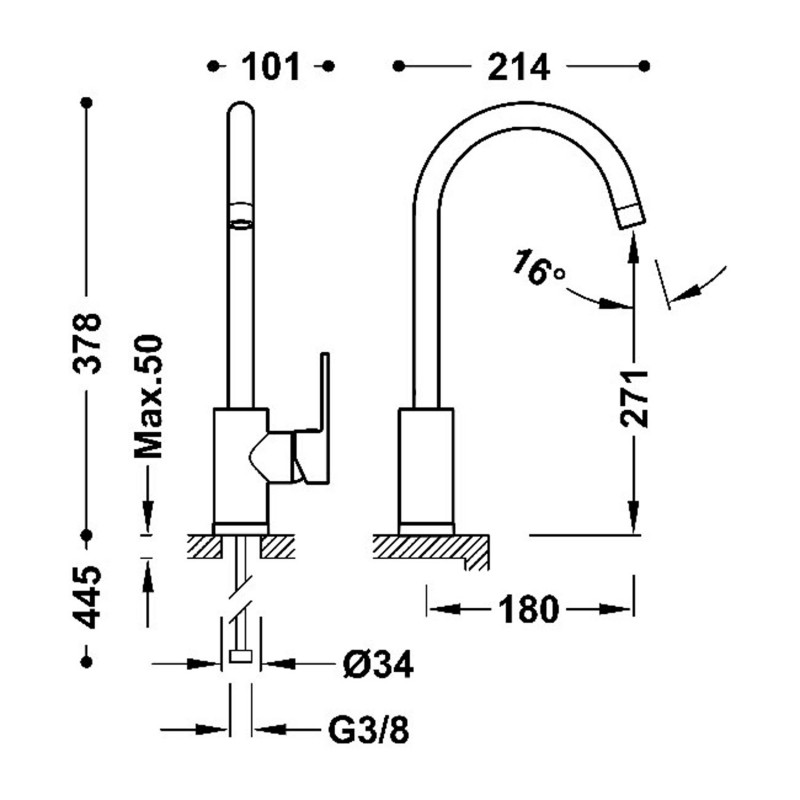 Смеситель для кухни Tres Kitchen однорычажный хром 21644020