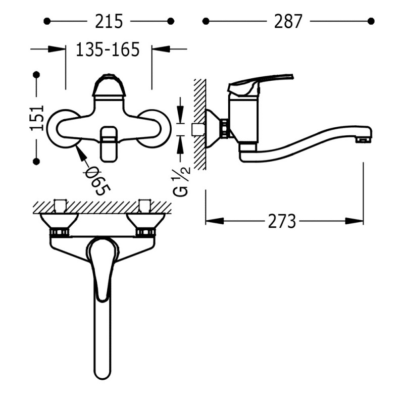 Наименование: однорычажный cмеситель для кухни настенного монтажа