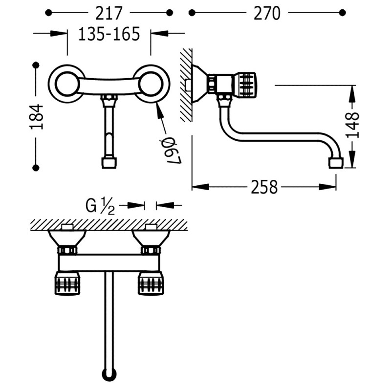 Наименование: двухвентильный cмеситель для кухни настенного монтажа