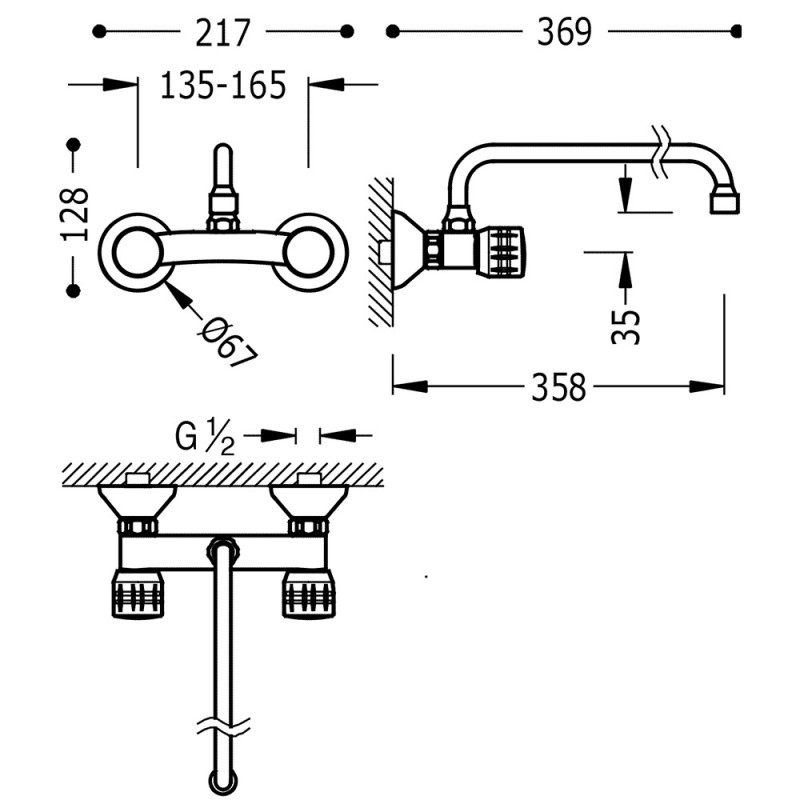Смеситель для кухни Tres Ese-23 двухвентильный настенный расстояние от стены 358 мм хром