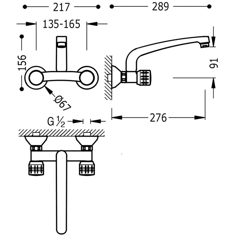 Наименование: двухвентильный cмеситель для кухни настенного монтажа