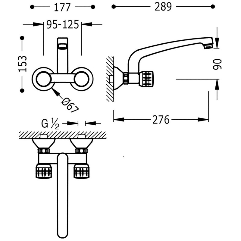 Наименование: двухвентильный cмеситель для кухни настенного монтажа