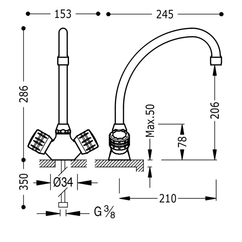 Смеситель для кухни Tres Ese-23 двухвентильный вертикальный хром 123342