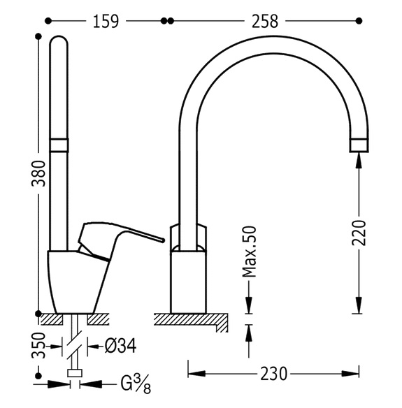 1) Смеситель для кухни Tres K-Tres однорычажный хром