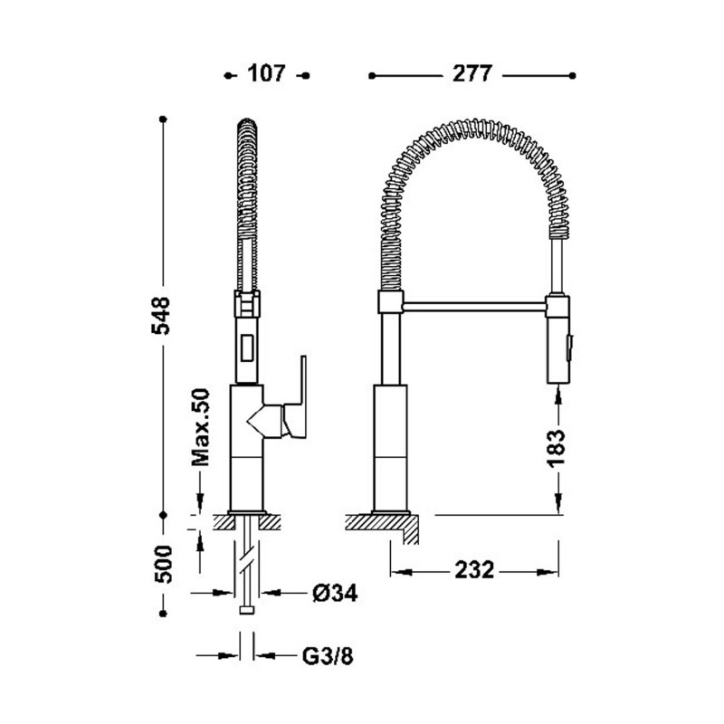 Смеситель для кухни Tres Kitchen однорычажный с выдвижной лейкой хром