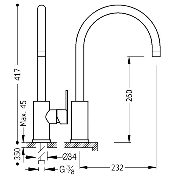 1) Смеситель для кухни Tres Lex-Tres однорычажный хром