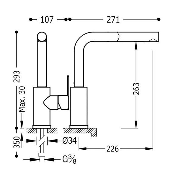 - однорычажный вертикальный смеситель для мойки со съемным душем