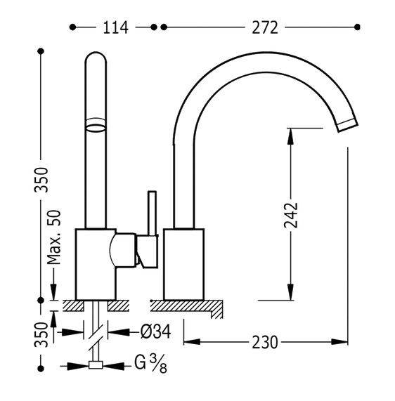- длина излива 230 мм