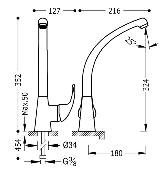 1) Смеситель для кухни Tres Monotres 2000 однорычажный вертикальный хром