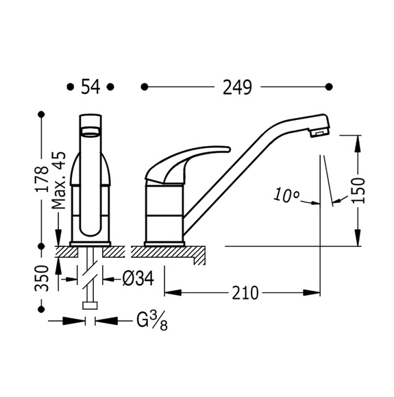 1) Смеситель для кухни Tres Monotres 2000 однорычажный вертикальный хром