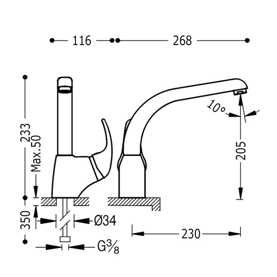 1) Смеситель для кухни Tres Monotres 2000 однорычажный вертикальный хром