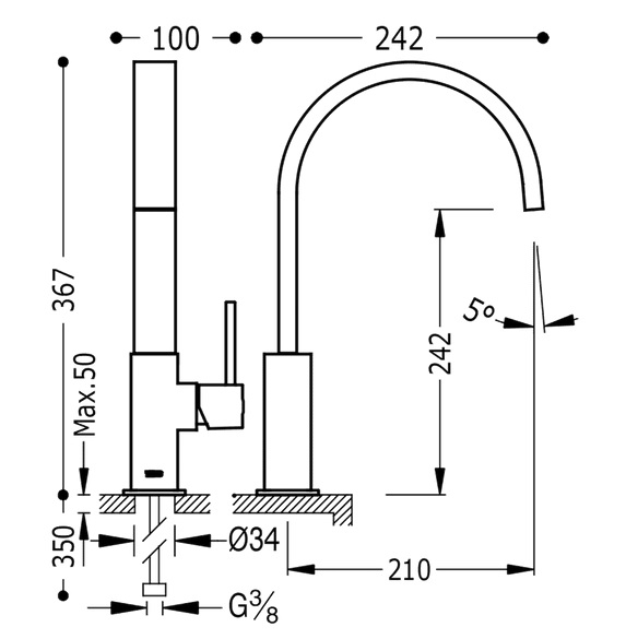 1) Смеситель для кухни Tres Top Tres colors однорычажный матовое золото