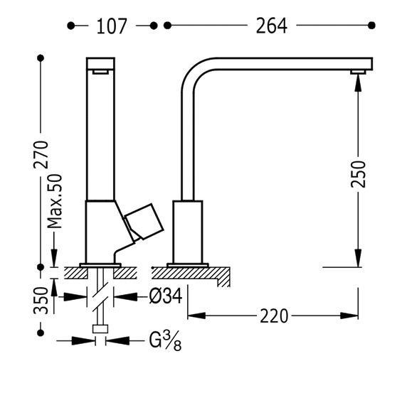 1) Смеситель для кухни Tres Top Tres colors одновентильный сталь
