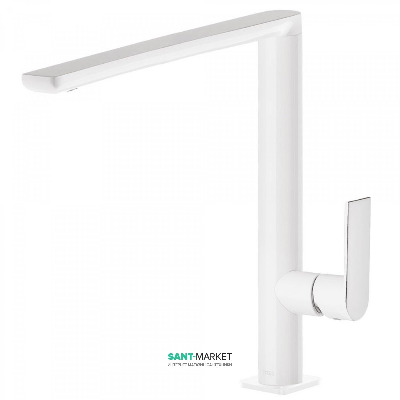1) Смеситель для кухни Tres Top Tres colors однорычажный белый/хром