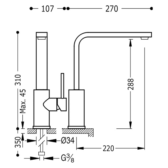 1) Смеситель для кухни Tres Top Tres colors однорычажный черный матовый