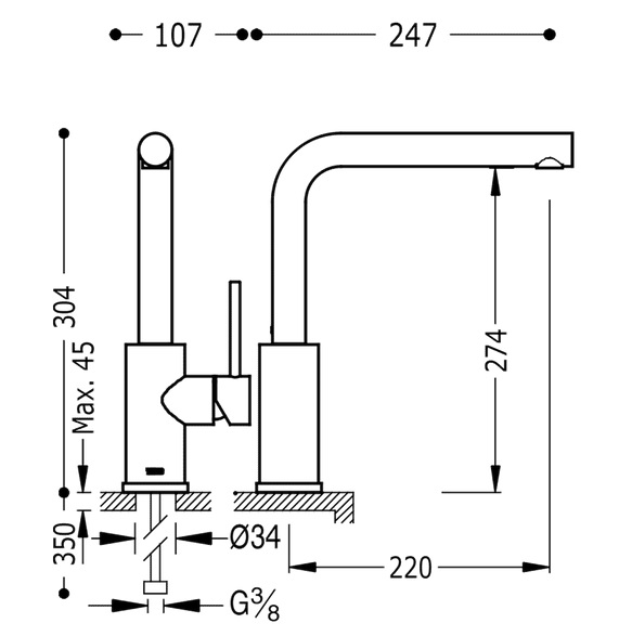 - подвод: G ⅜