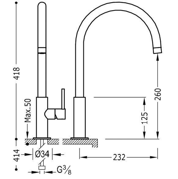 1) Смеситель для кухни Tres Top Tres colors однорычажный сталь
