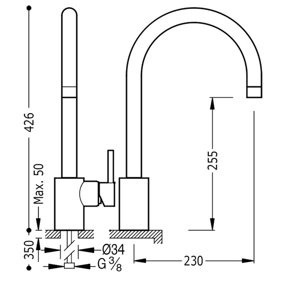Смеситель для кухни Tres Top Tres colors однорычажный сталь