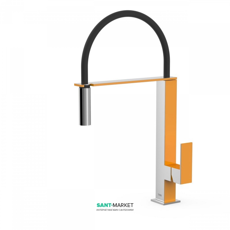 1) Смеситель для кухни Tres Top Tres colors с выдвижной лейкой янтарно-желтый/хром