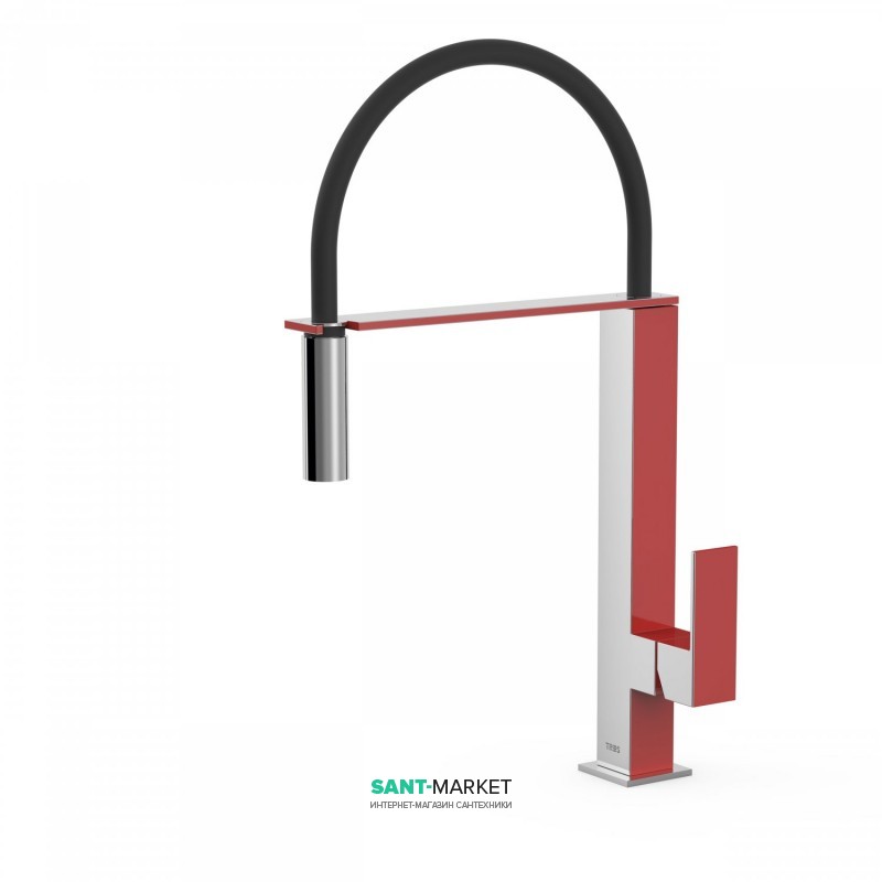 1) Смеситель для кухни Tres Top Tres colors с выдвижной лейкой красный/хром
