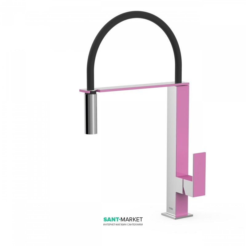1) Смеситель для кухни Tres Top Tres colors с выдвижной лейкой фуксия/хром