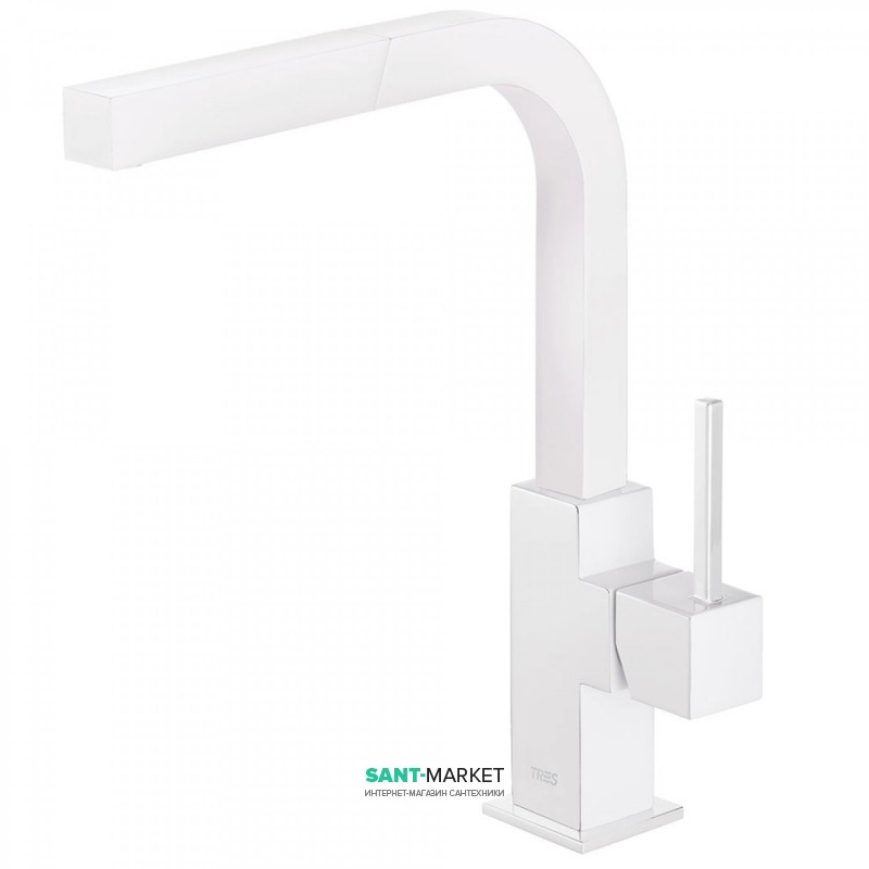 1) Смеситель для кухни Tres Top Tres colors с выдвижной лейкой белый матовый