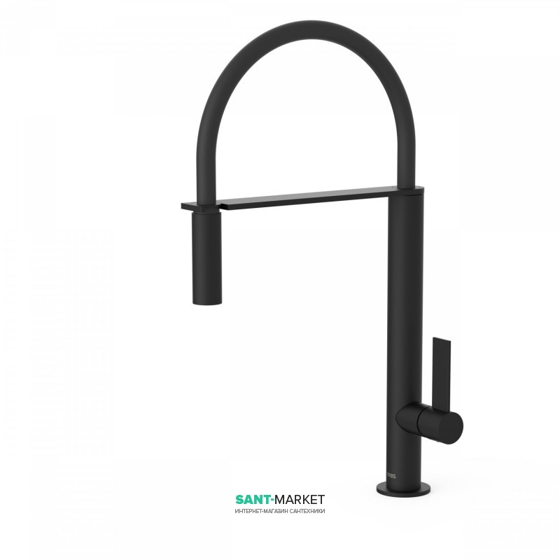 1) Смеситель для кухни Tres Top Tres colors с выдвижной лейкой черный матовый