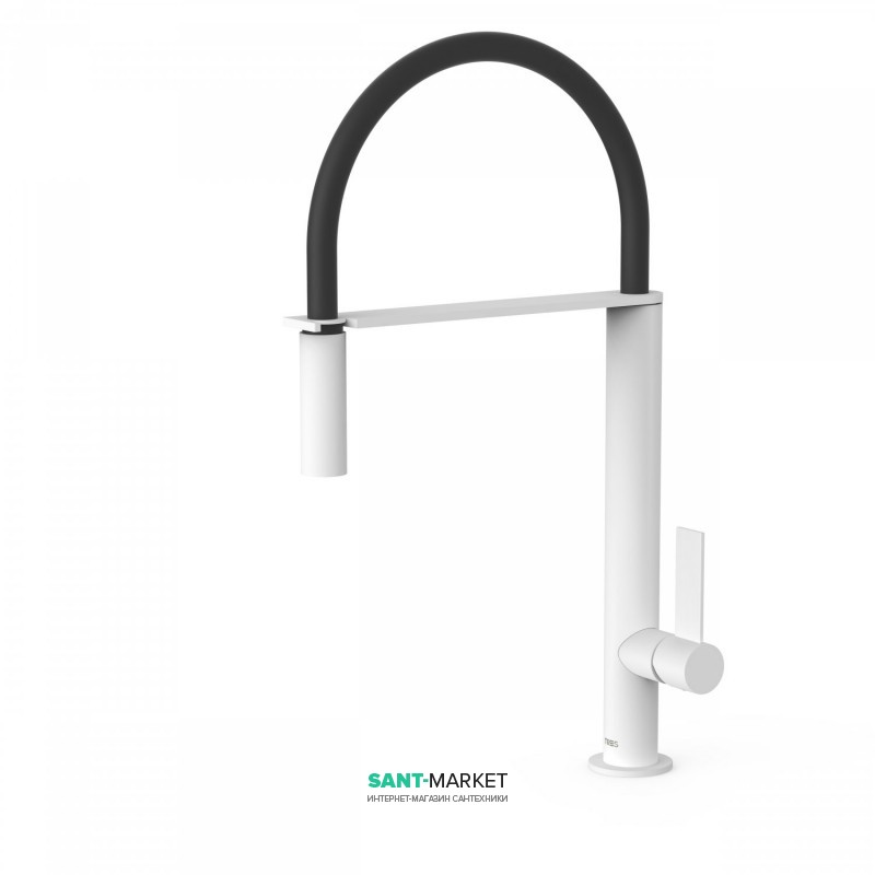 1) Смеситель для кухни Tres Top Tres colors с выдвижной лейкой белый матовый