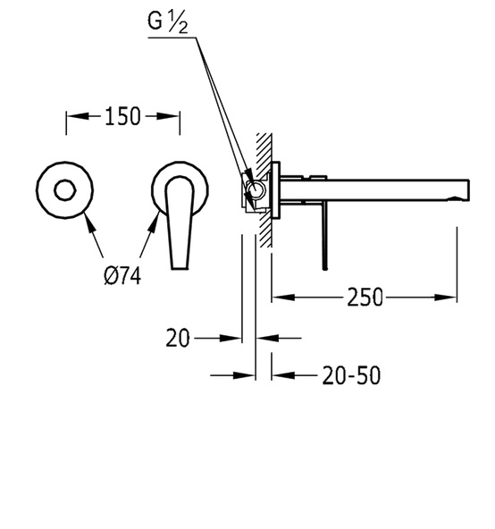 1) Смеситель для кухни Tres Top Tres colors однорычажный настенный сталь