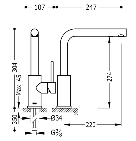 1) Смеситель для кухни Tres Top-Tres однорычажный хром