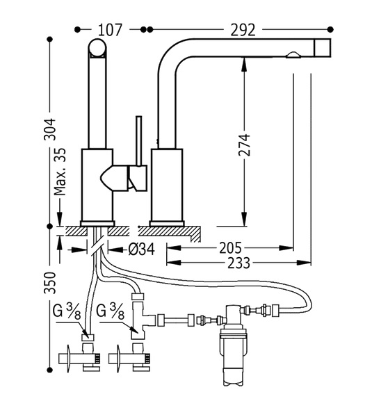 1) Смеситель для кухни Tres Top-Tres однорычажный с фильтром хром