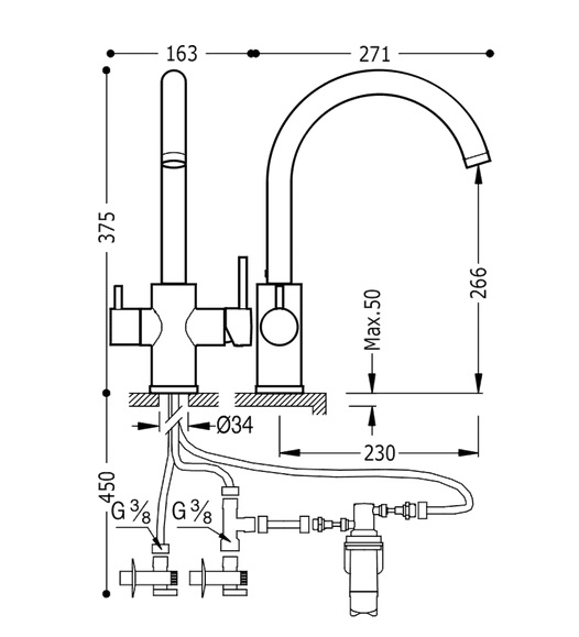 Смеситель для кухни Tres Top-Tres однорычажный с фильтром хром 03035501