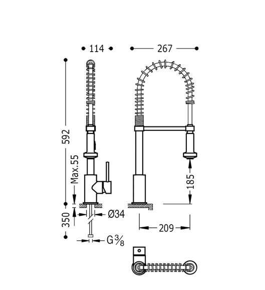 - однорычажный вертикальный смеситель для мойки со съемным душем