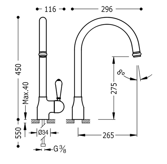 - подвод: G ⅜
