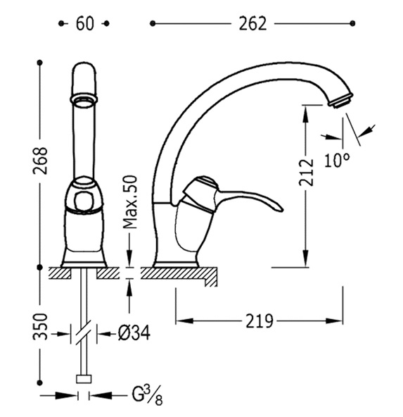1) Смеситель для кухни Tres Tres-Сlasic color однорычажный состаренная латунь