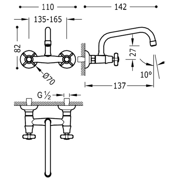 1) Смеситель для кухни Tres Tres-Сlasic color настенный состаренная латунь