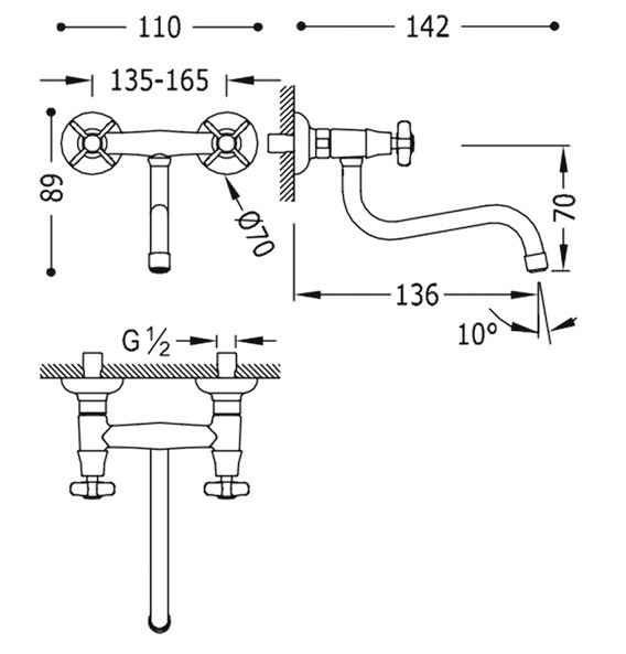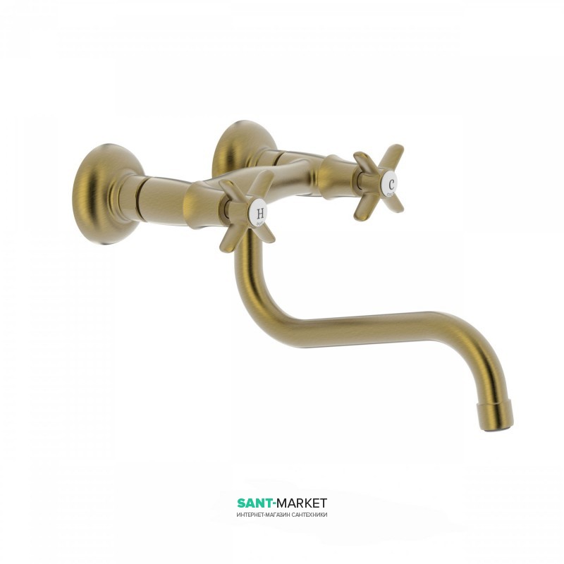 1) Смеситель для кухни Tres Tres-Сlasic color настенный состаренная латунь матовая