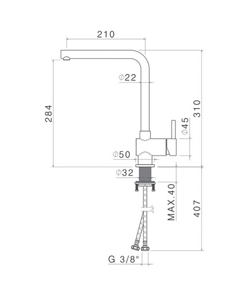 - Тип подводки труб: гибкая
