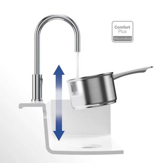 Смесители ComfortPlus имеют удобную высоту и дают свободу перемещения. Это отличное решение для легкой очистки противней и заполнения больших емкостей для оптимального удобства использования в зоне мойки.