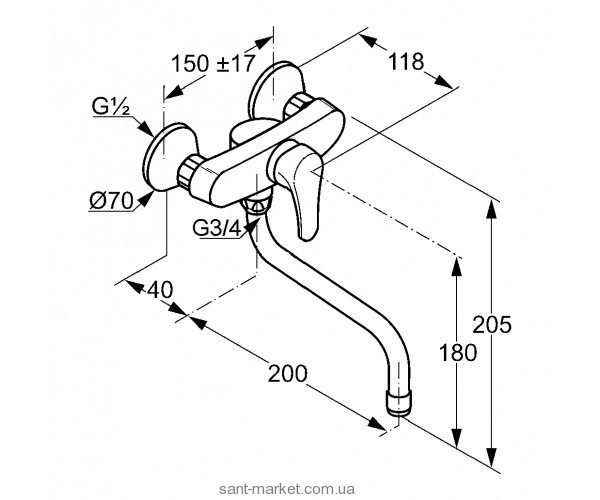 Смеситель для мойки Kludi Tercio настенный однорычажный 389540575