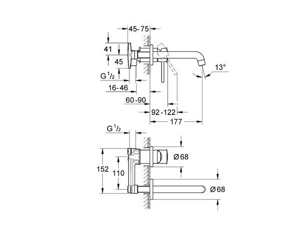 Смеситель для раковины однорычажный настенный Grohe коллекция BauClassic хром 20292000