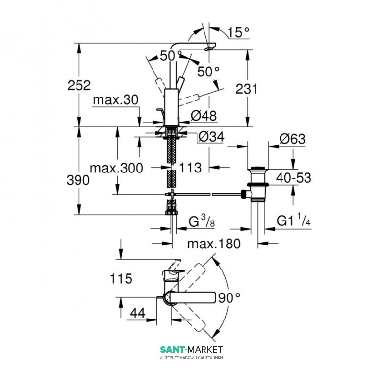 Смеситель для раковины однорычажный с донным клапаном Grohe коллекция Lineare суперсталь 23296DC1