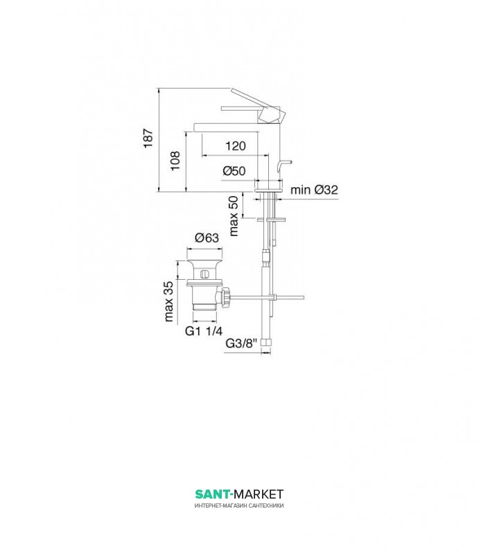 Смеситель для раковины однорычажный Treemme Klab bianco/chrome 2710BC