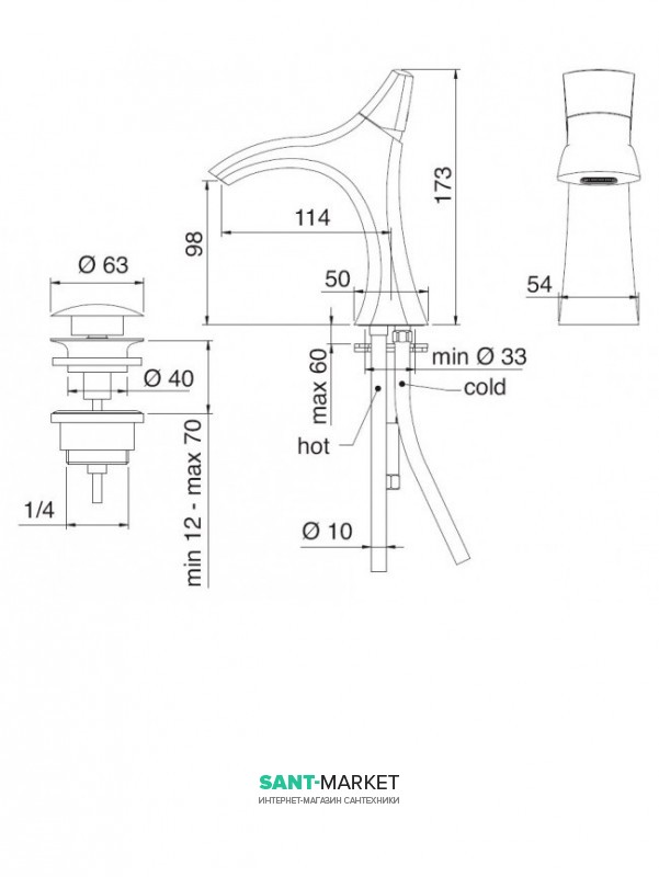Смеситель для раковины однорычажный Treemme Hedo хром 0910 CC