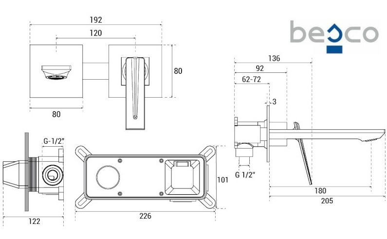 Смеситель для раковины Besco Aspira настенный однорычажный графит