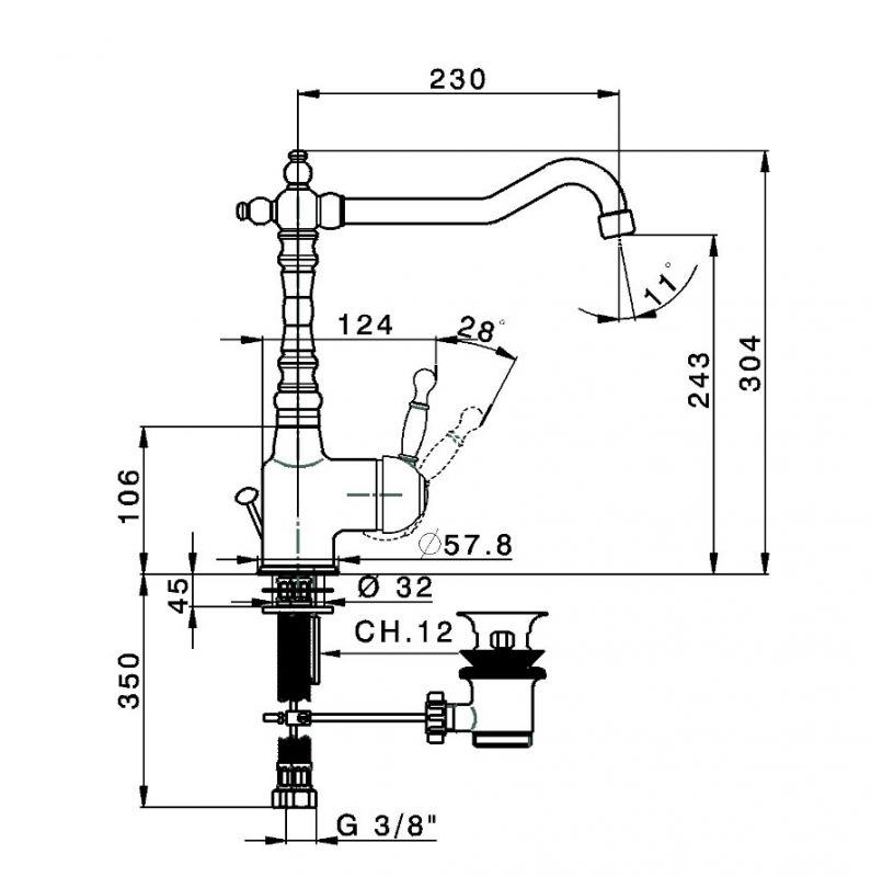 Смеситель для раковины Devit Charlestone высокий однорычажный с донным клапаном хром CN60050037